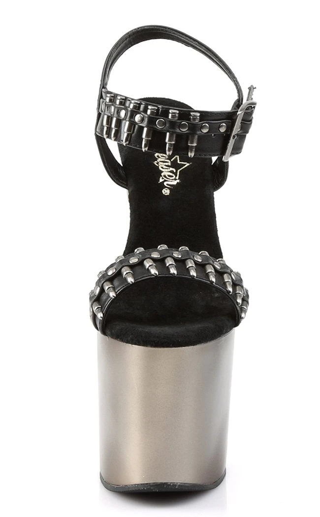 7 1/2″ Gun Heel Ankle Strap P/F Sandal W/Bullet