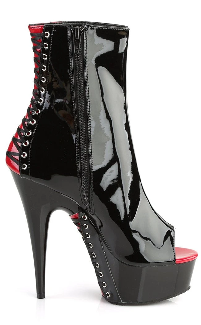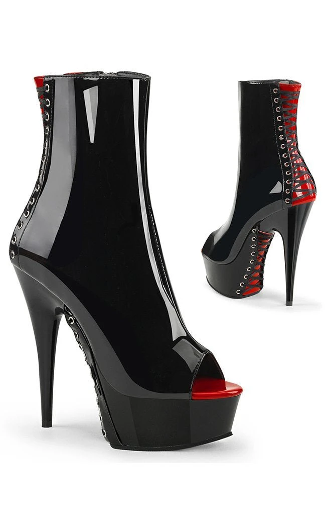 6″ Heel, 1 3/4″ PF Peep Toe Corset Style Ankle Boot, Side Zi