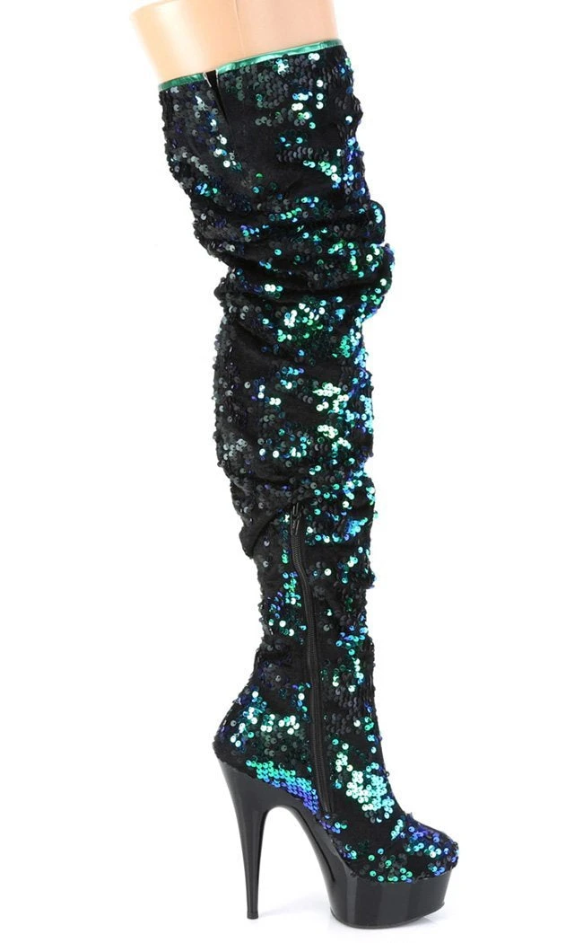 6″” (152mm) Heel, 1 3/4″” (45mm) Platform Over-The-Knee Slouch Boot, Inside Zip Closure