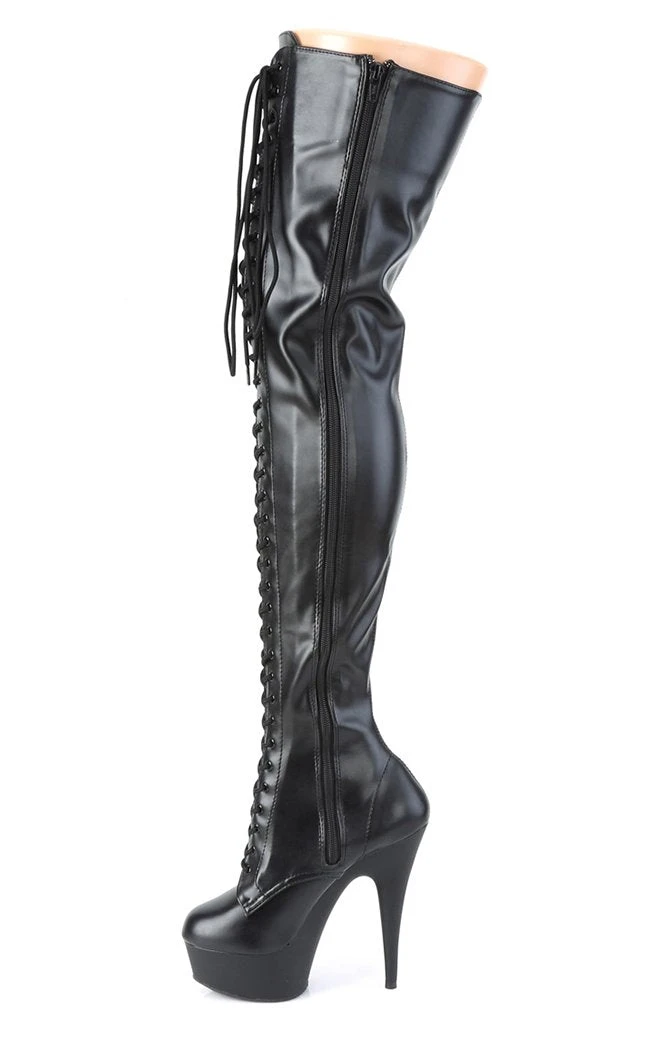 6″ Lace-Up Stretch PF Thigh Boot, Side Zip