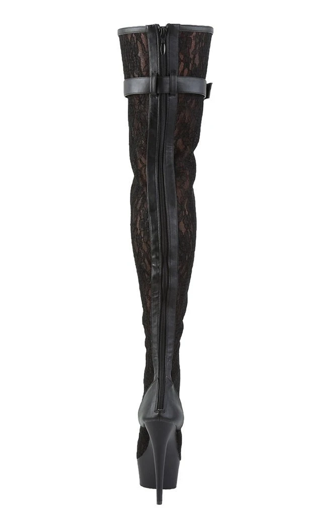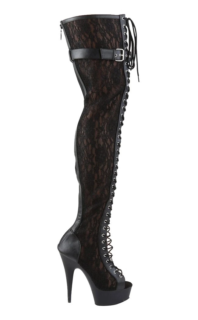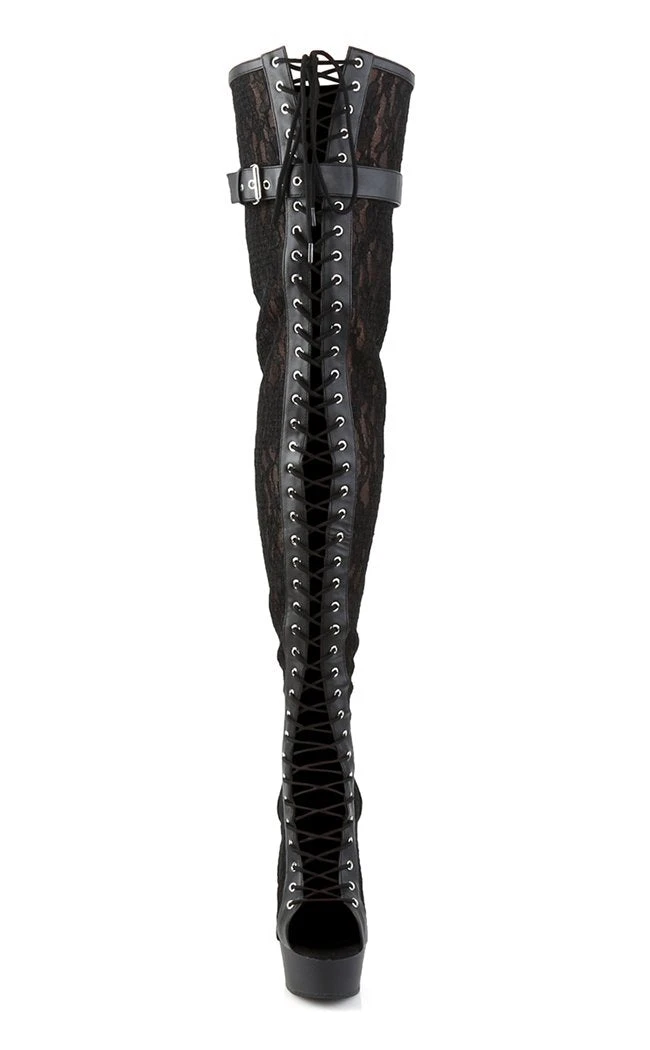 6″ Heel, 1 3/4″ PF Peep Toe Lace-up Thigh Boot, Back Zip
