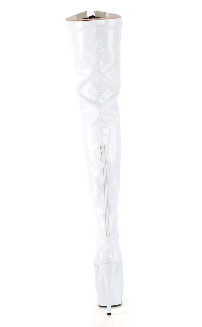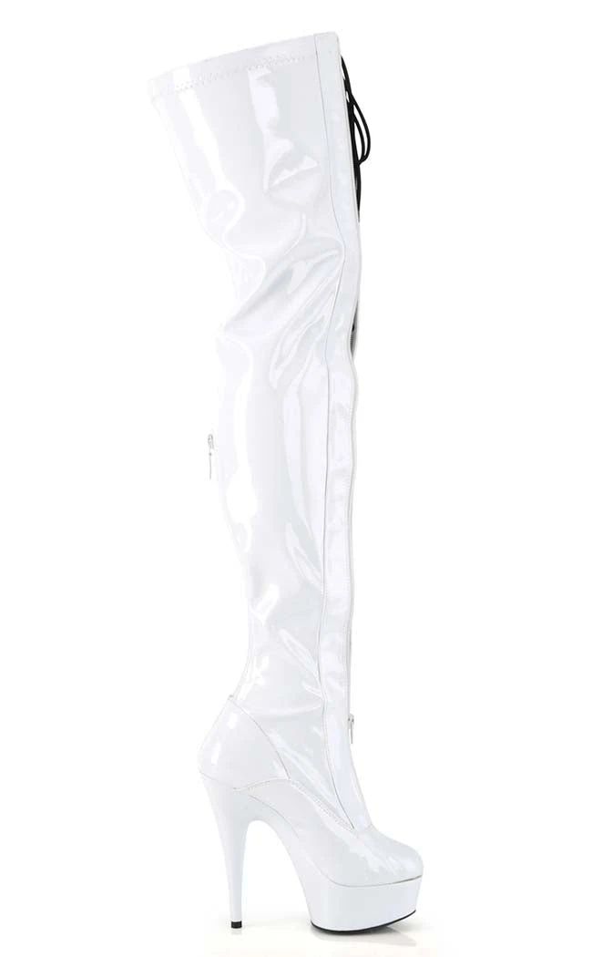 Pleaser DELIGHT-3027 White/Black Patent Thigh High Boots