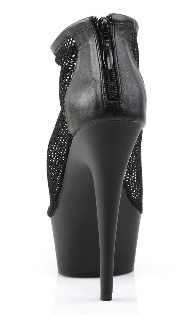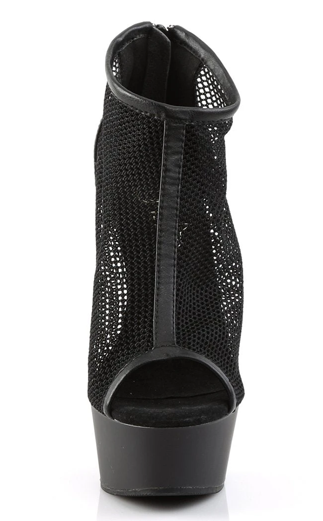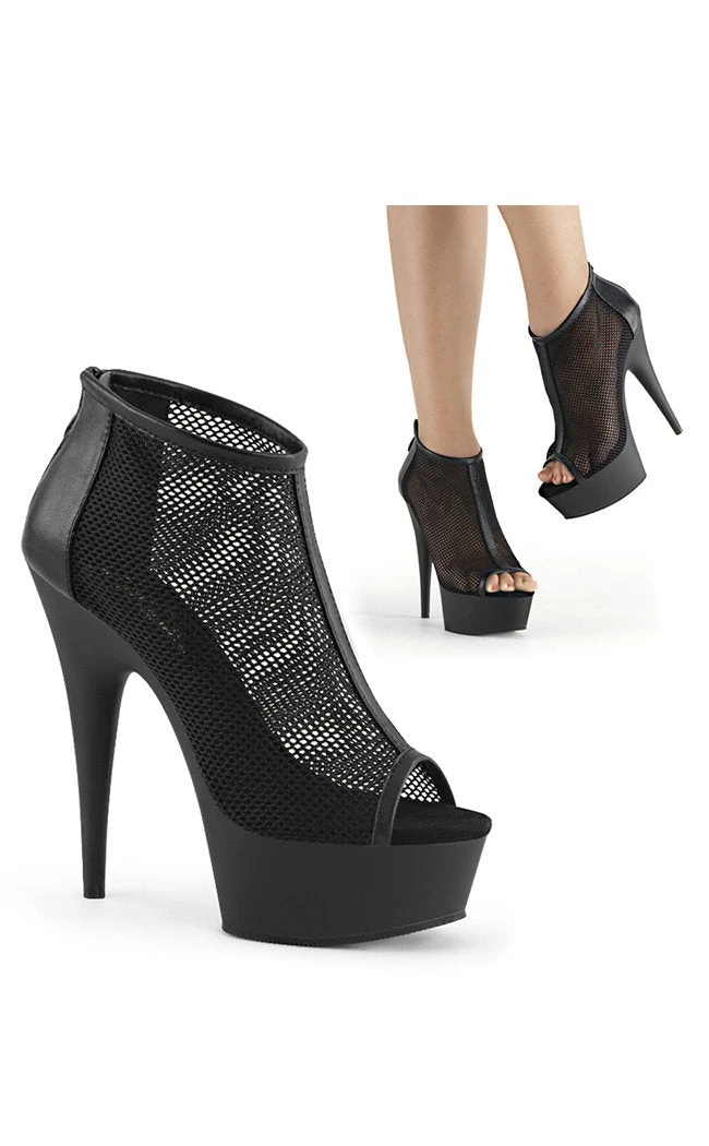 6″ Heel, 1 3/4″ PF Peep Toe Mesh Bootie, Back Zip