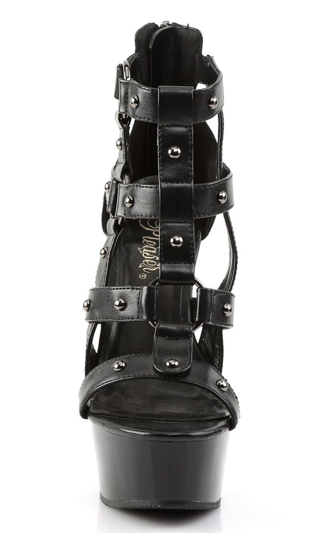 6″ Heel, 1 3/4″ PF Cage Sandal W/ Metail Studs Detail