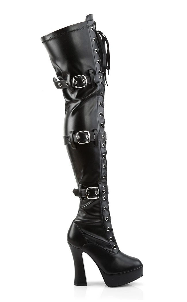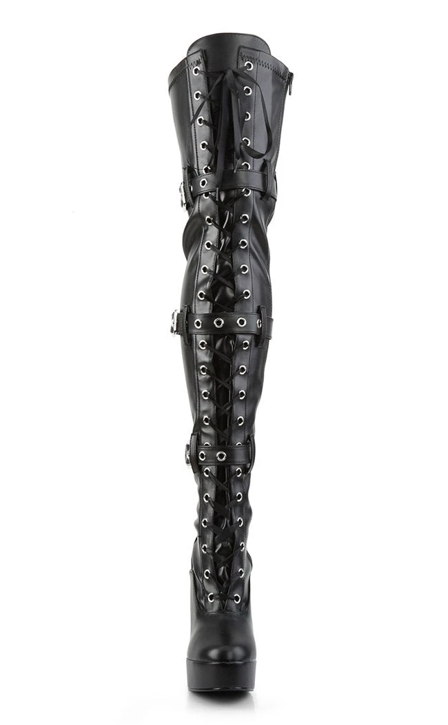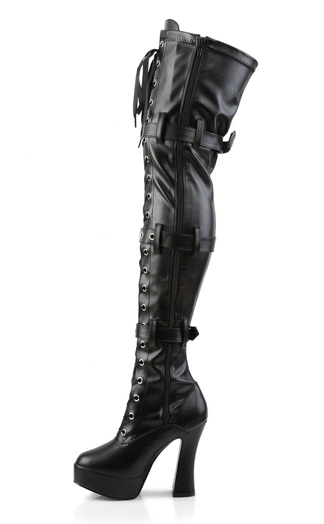 5″ Stack Heel, 1 1/2″ PF Front Lace-Up Thigh High Boot,Side