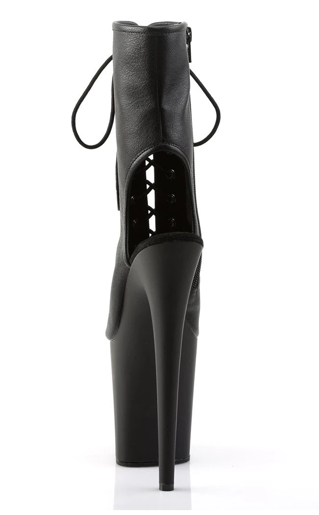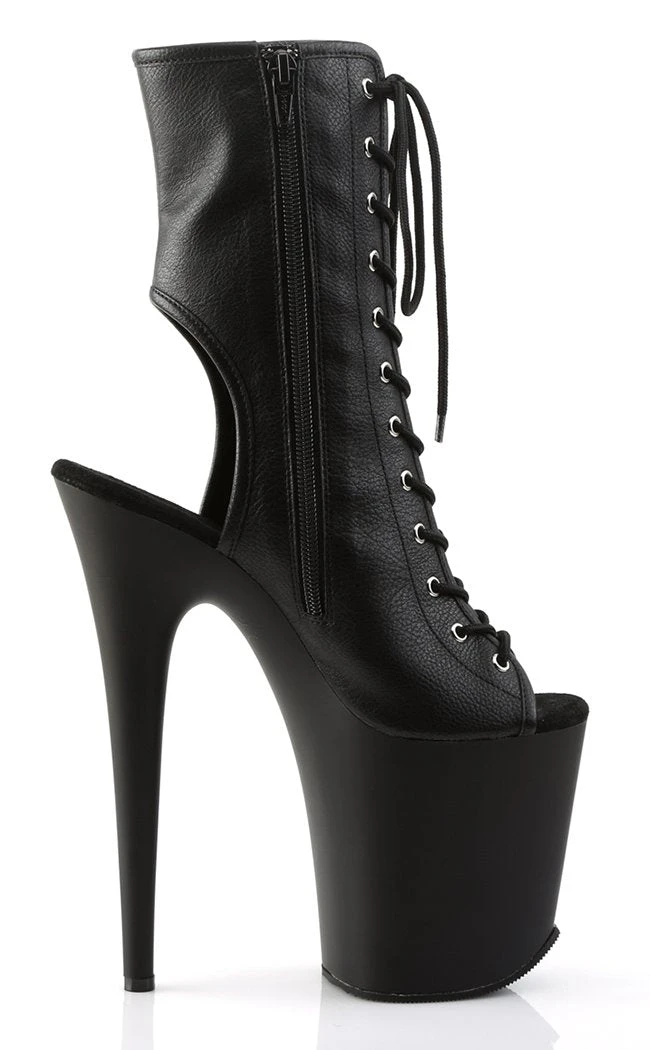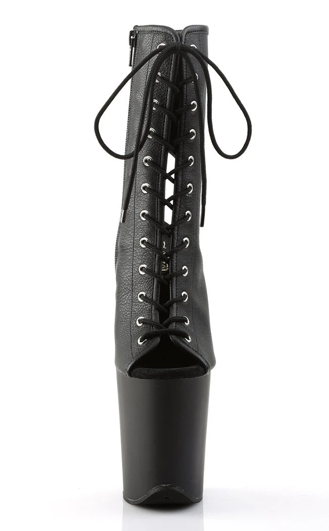8″ Heel, 4″ PF Open Toe/Heel Lace-Up Ankle Boot, Side Zip