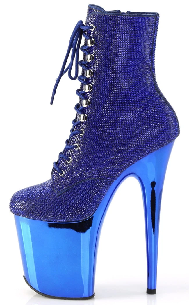Shine on, baby! The FLAMINGO-1020CHRS series features gorgeous chrome wrapped 8 inch platforms and an upper totally encrusted with genuine rhinestones. Get your dance routine that little bit extra!