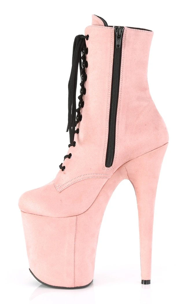 8″ (200mm) Heel, 4″ (100mm) Platform Lace-Up Front Ankle Boot Featuring Fully Wrapped Platform Bottom, Inside Zip Closure