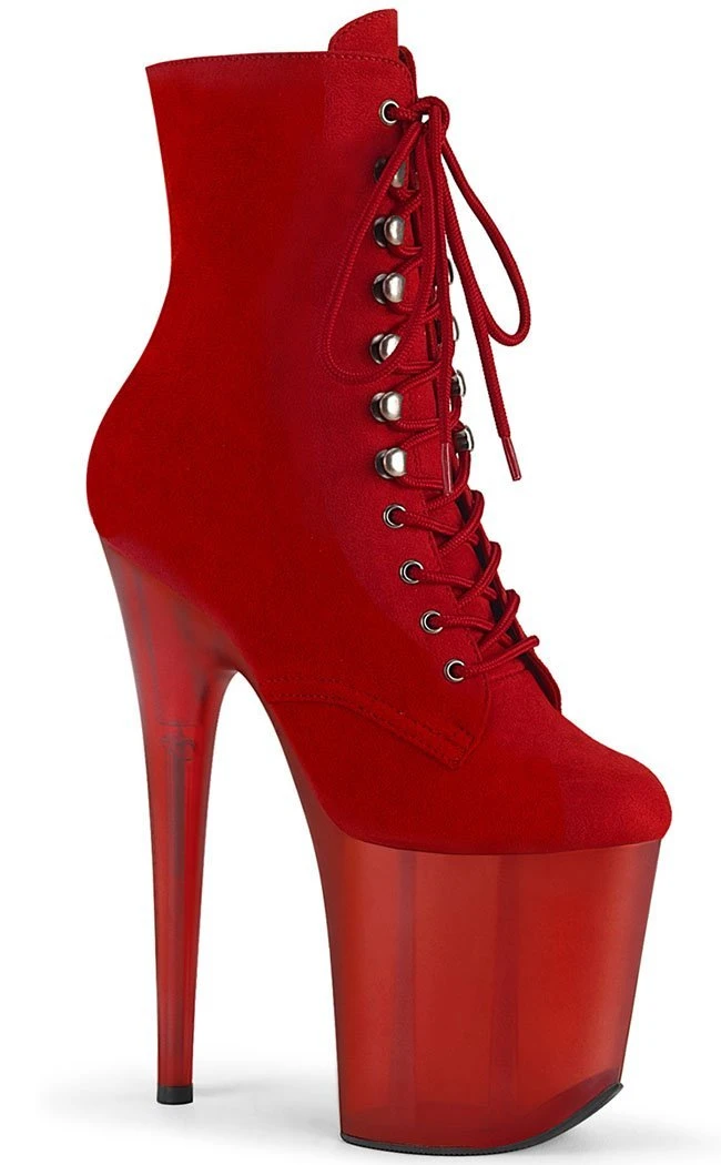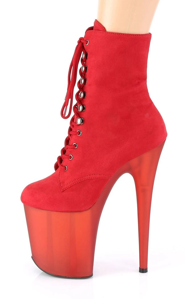 8″ (200mm) Heel, 4″ (100mm) Platform Lace-Up Front Ankle Boot Featuring Tinted Platform BottomÂ