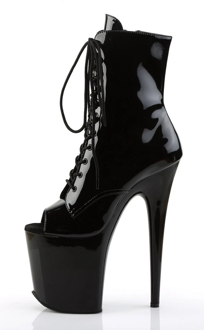8″ Heel, 4″ PF Peep Toe Lace-Up Ankle Boot, Side Zip