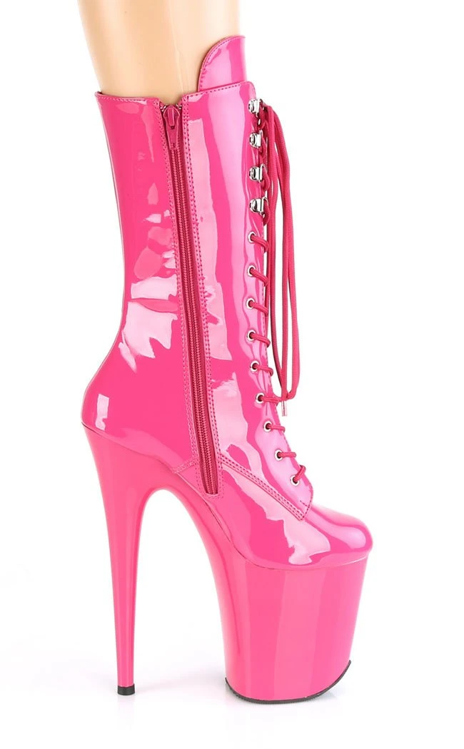 8″ (200mm) Heel, 4″ (100mm) Platform Lace-Up Front Mid Calf Boot, Inside Zip Closure