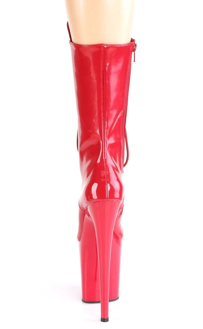 8″ (200mm) Heel, 4″ (100mm) Platform Lace-Up Front Mid Calf Boot, Inside Zip Closure