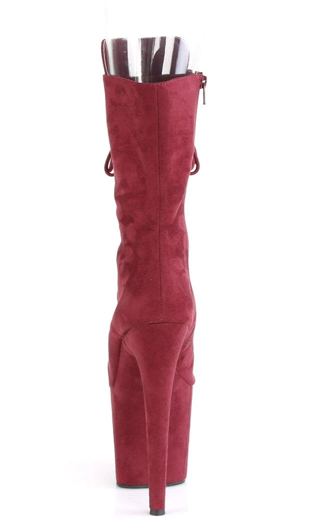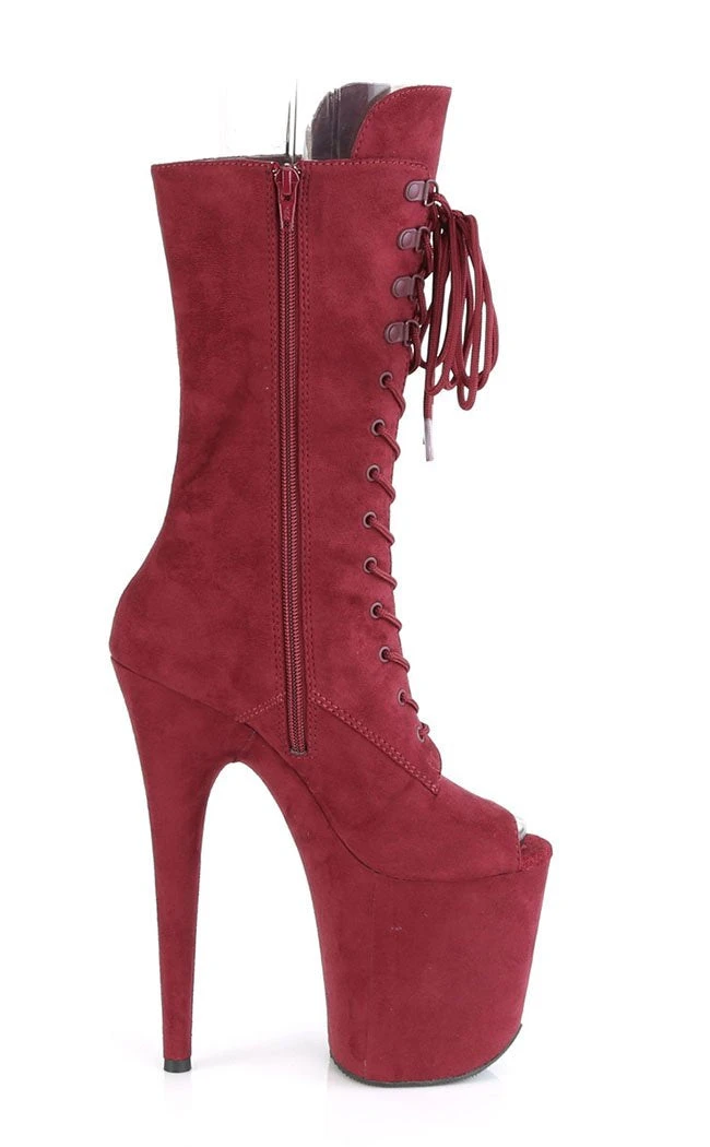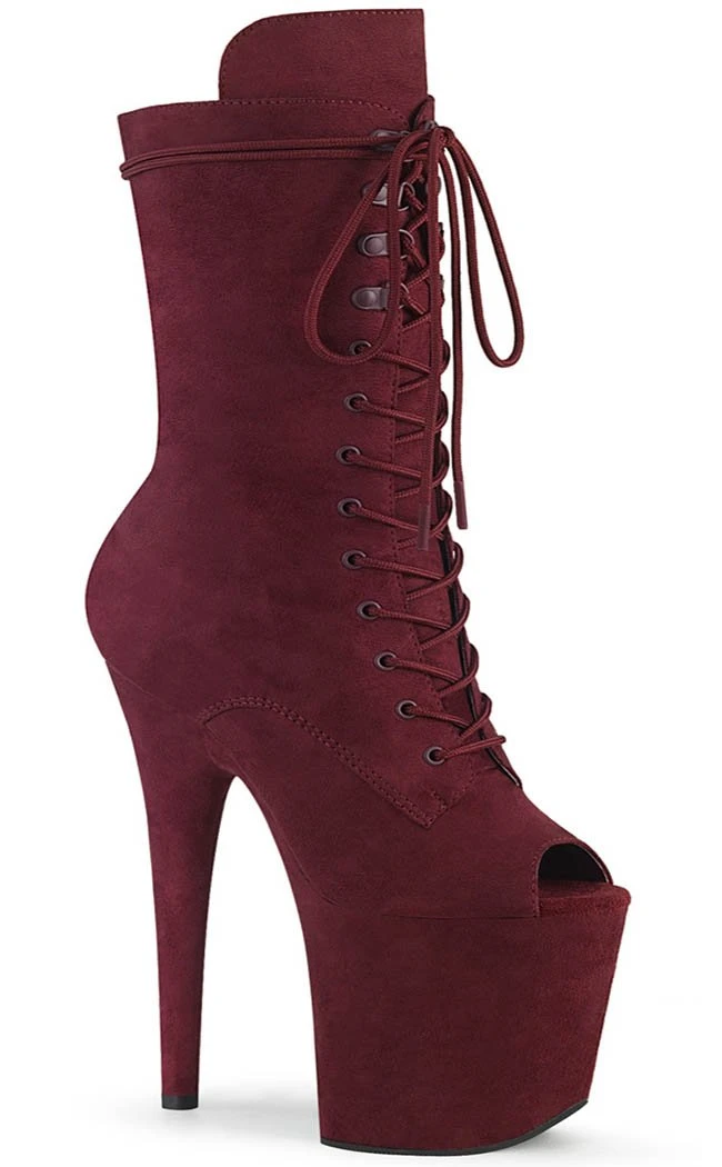 8″ (200mm) Heel, 4″ (100mm) Platform Peep Toe Lace-Up Front Mid Calf Boot Featuring Fully Wrapped Platform Bottom, Inside Zip Closure