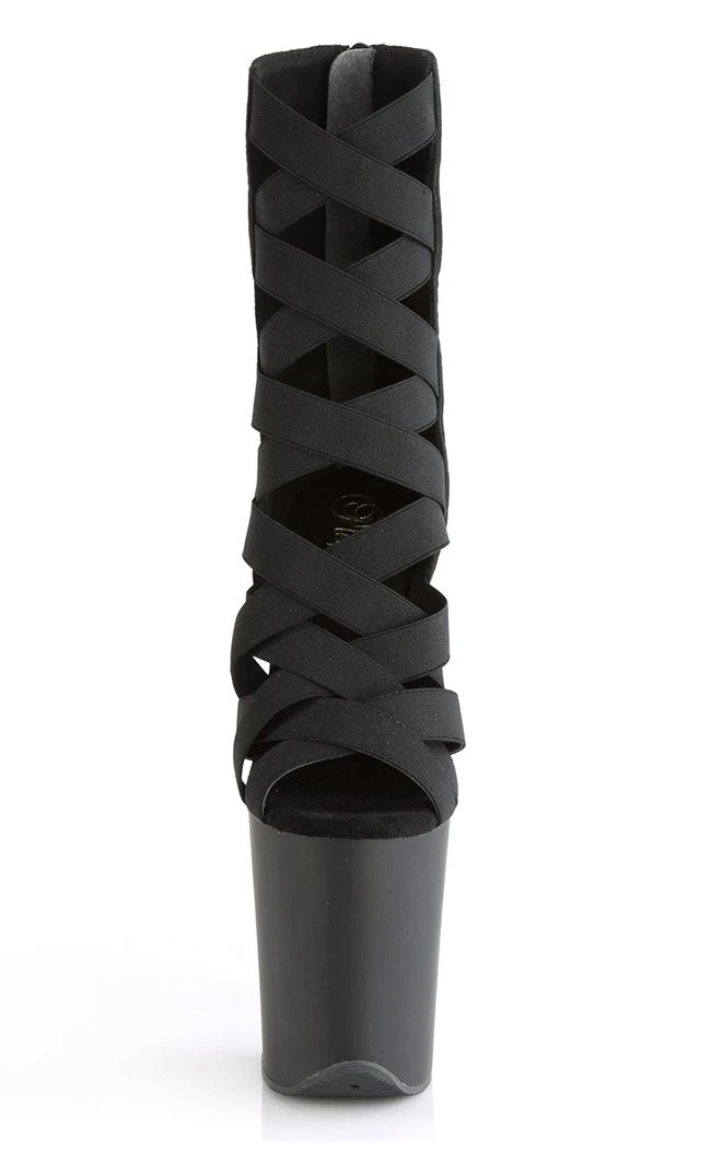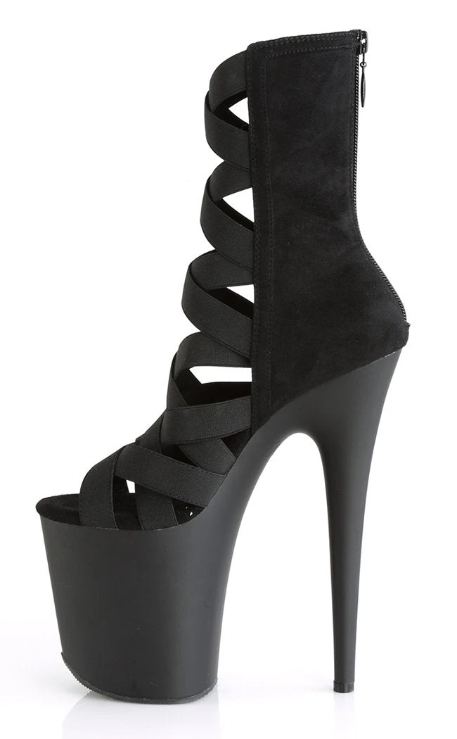 Cute strappy lattice pattern 8″ heels with a 4″ platform.