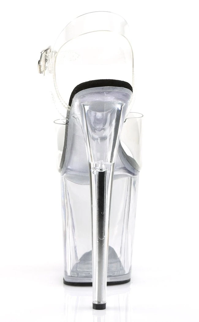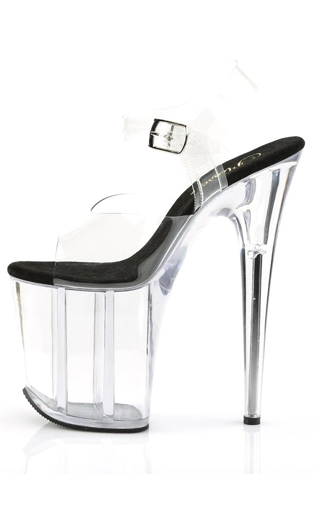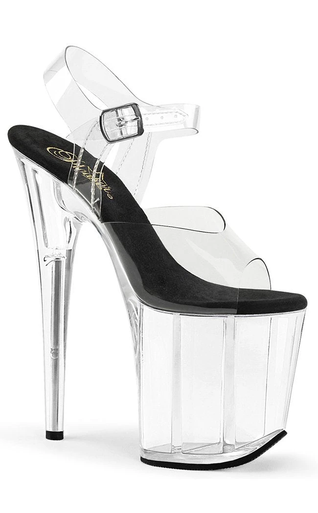 Stand tall, babe! You’ll be towering over the crowd in the Flamingo series. These pole-dancing shoes feature a crystal clear upper, platform and stiletto heel with contrasting black footbed.