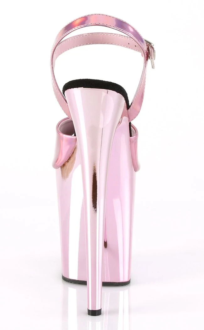 8″ (203mm) Heel, 4″ (102mm) Platform Ankle Strap Sandal w/ Chrome Plated Platform Bottom