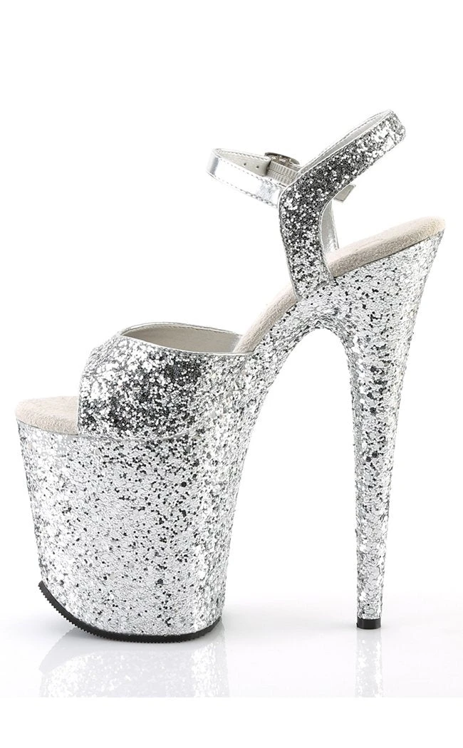 8″ Heel, 4″ PF Glitter Ankle Strap Sandal