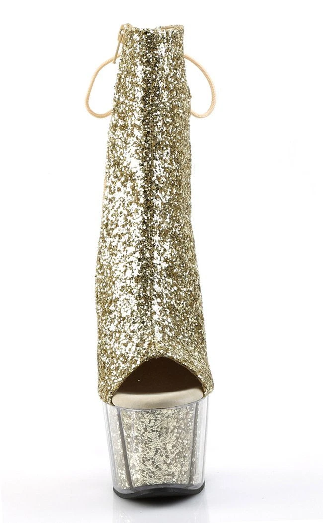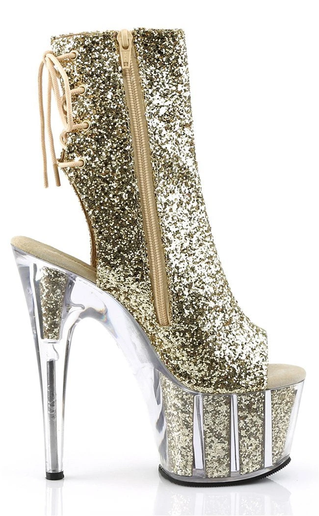 7″ Heel, 2 3/4″ PF Glitter Ankle Boot, Side Zip