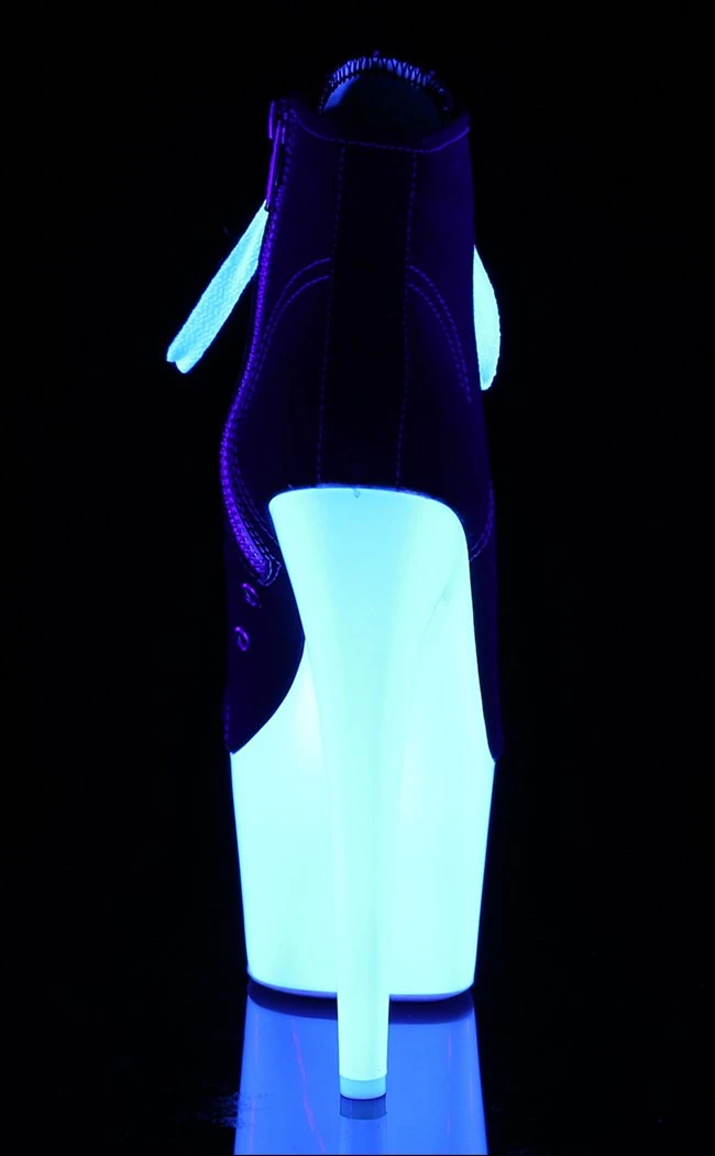7″ (178mm) Heel, 2 3/4″ (70mm) Platform Lace Up Front Canvas Sneaker Featuring Blacklight Reactive Platform Bottom, Full Inside Zip Closure