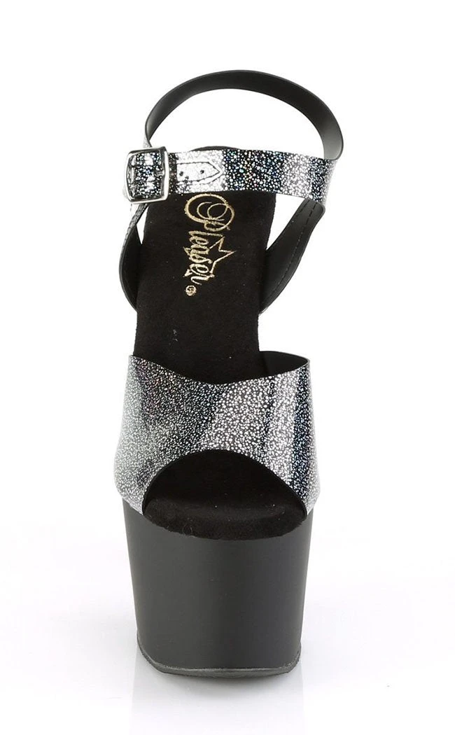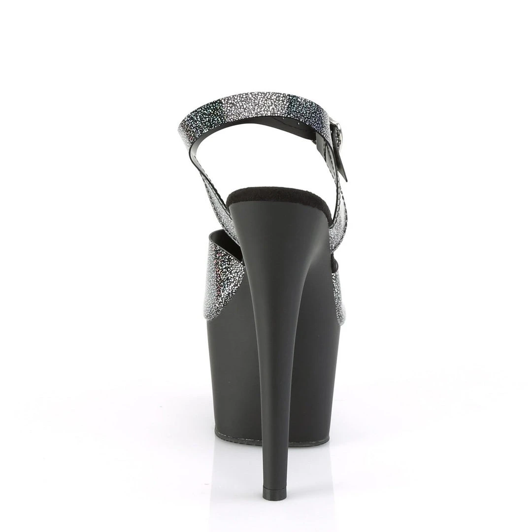 Stunning silver holographic platform heels with contrasting matte black platform. Popular for pole and exotic dancers, these babies ooze sex appeal and glamour.Â