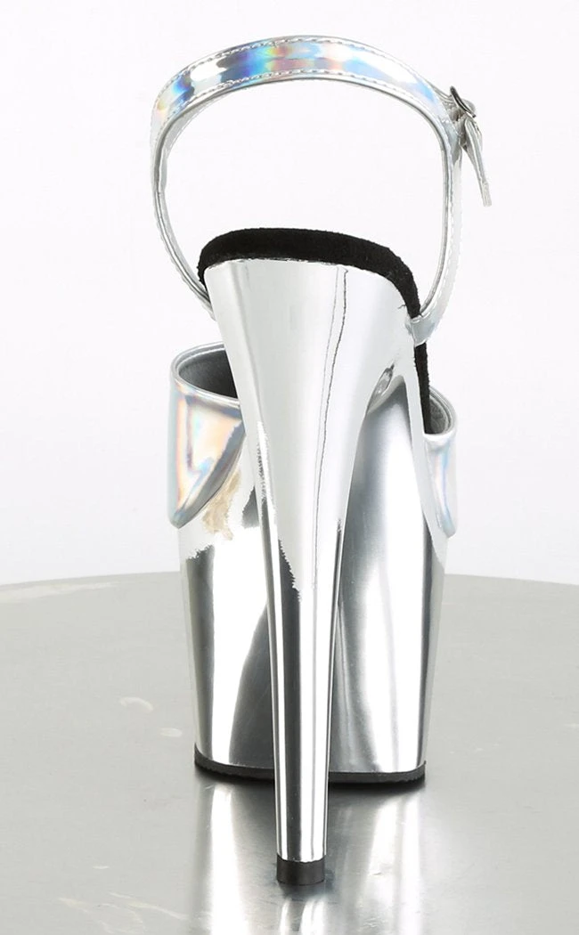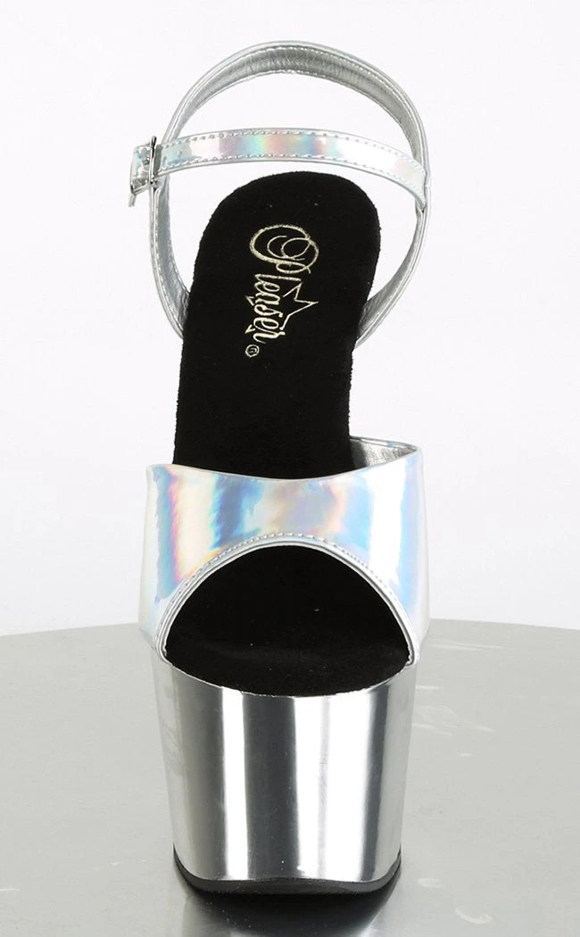 Pleaser Pole Shoes ADORE-709HGCH Silver Hologram Chrome Heels