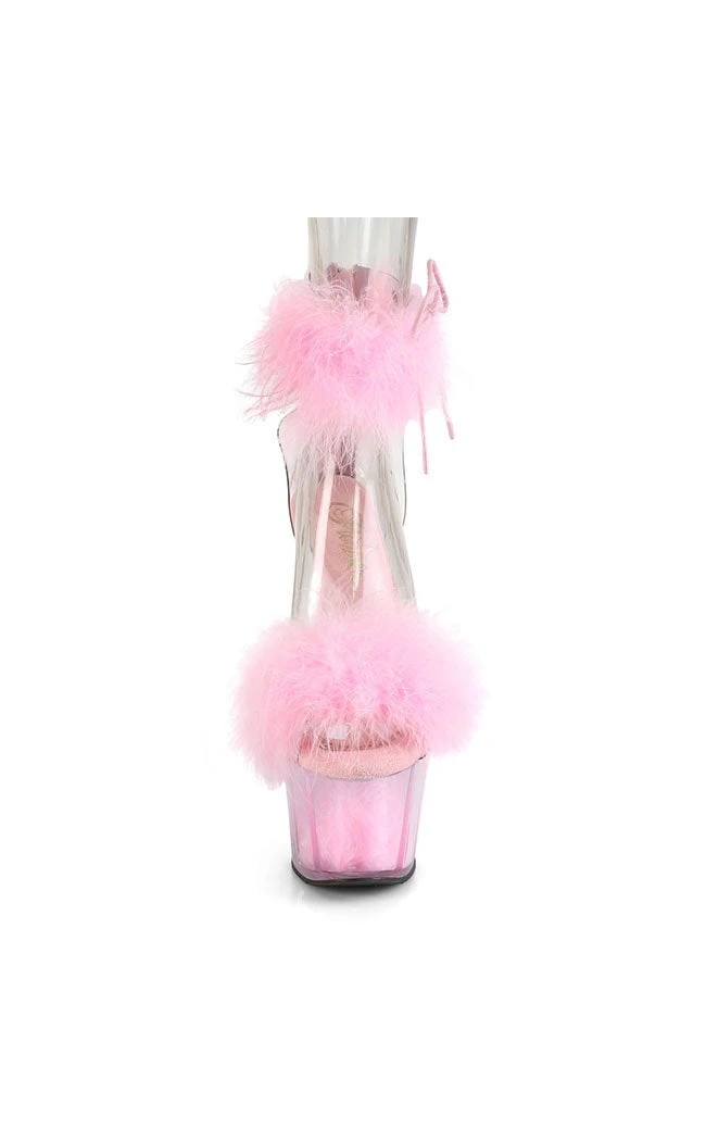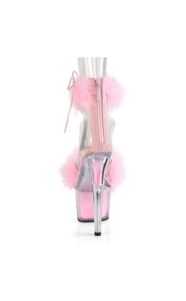 7″ Heel, 2 3/4″ PF Marabou Fur Ankle Cuff Sandal, Back Zip