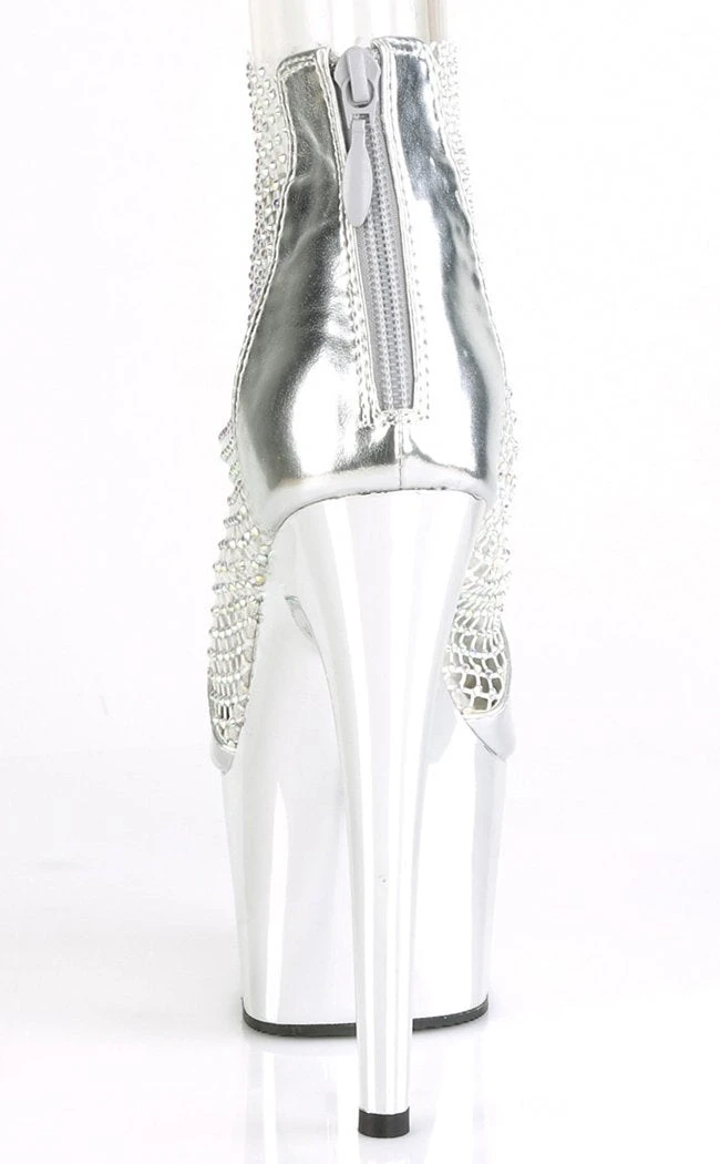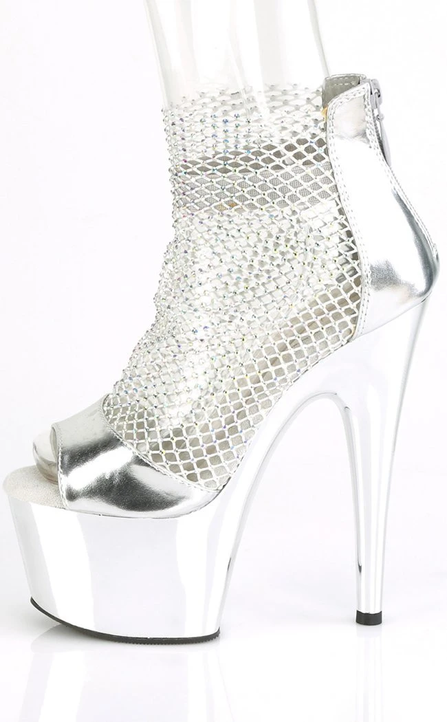 Pleaser Pole Shoes ADORE-765RM Silver Chrome Rhinestone Mesh Heels