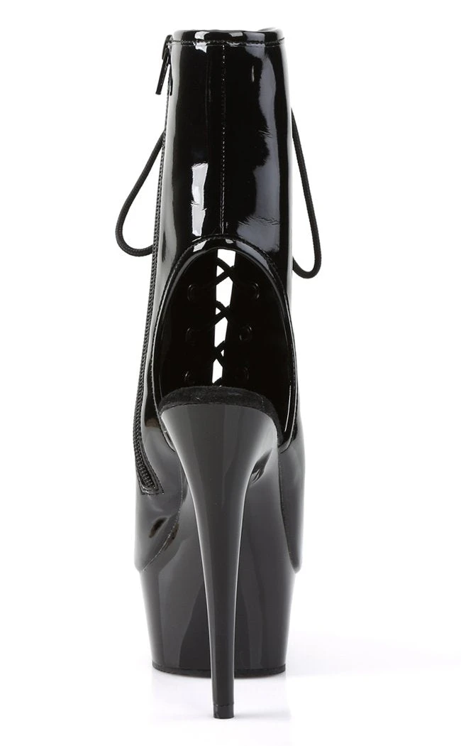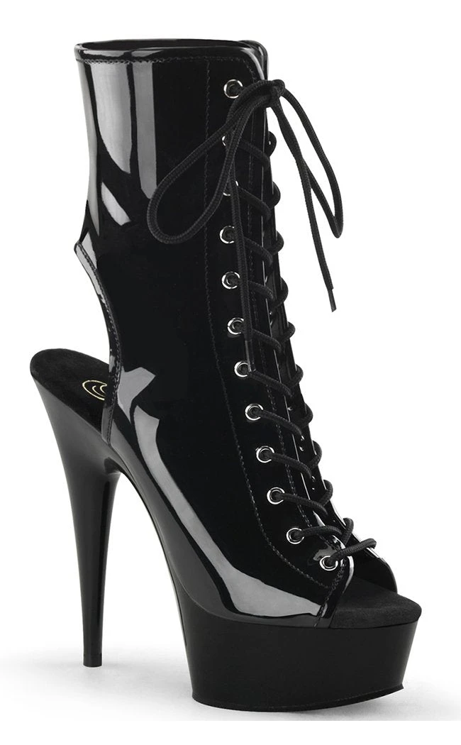 6″ Heel, 1 3/4″ PF Open Toe/Back Lace-Up Bootie, Side Zip