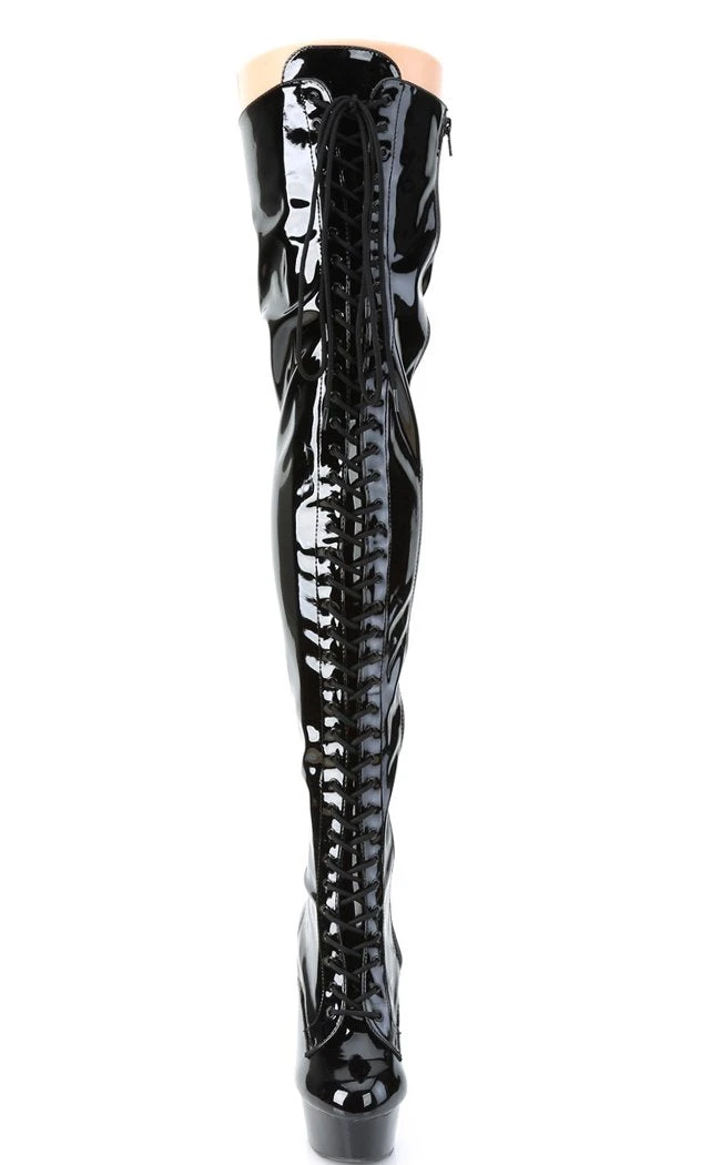6″ Lace-Up Stretch PF Thigh Boot, Side Zi