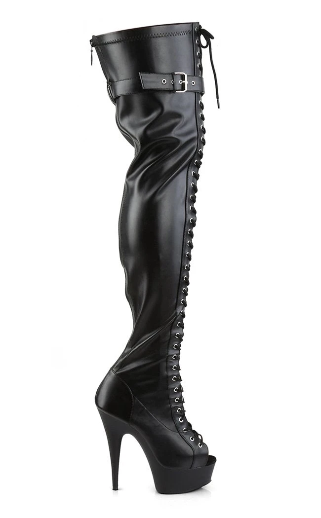 6″ Heel, 1 3/4″ PF Peep Toe Lace-up Thigh Boot, Back Zip