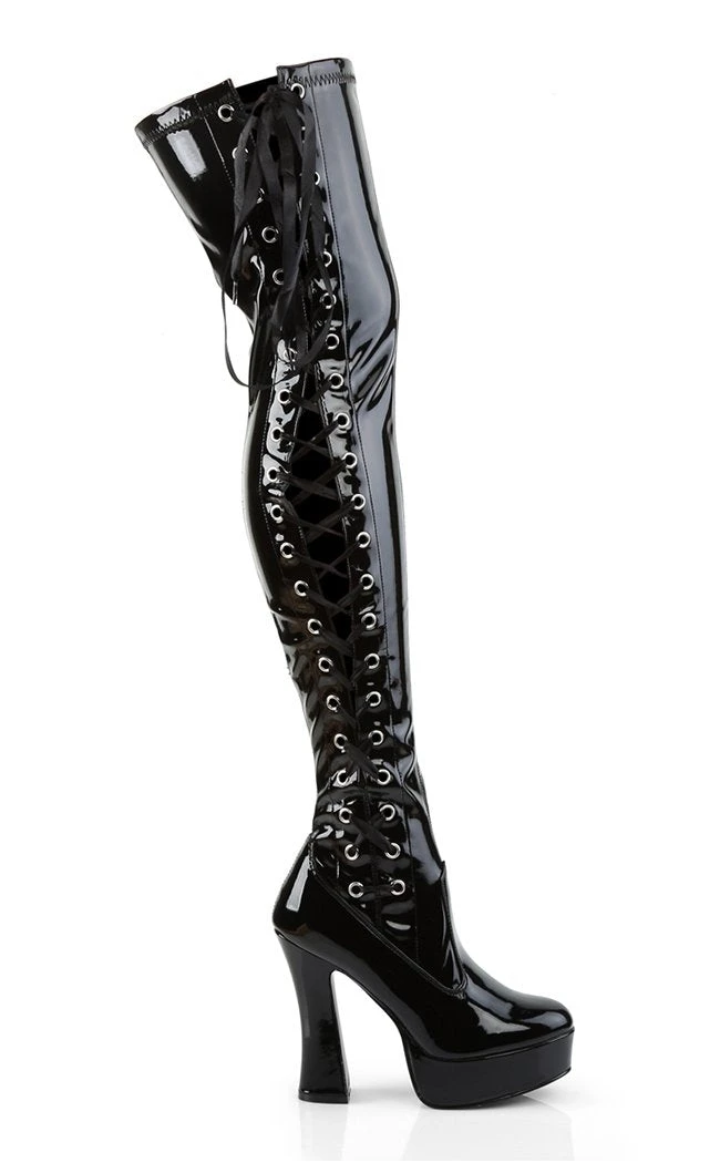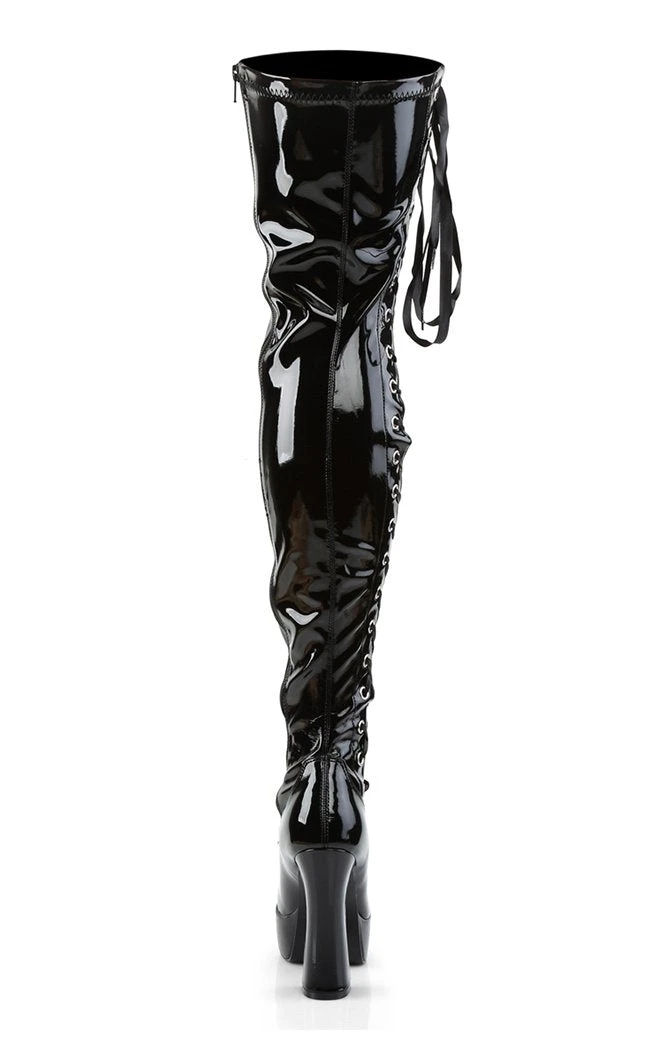 5″ Stack Heel, 1 1/2″ PF Side Lace-Up Thigh High Boot