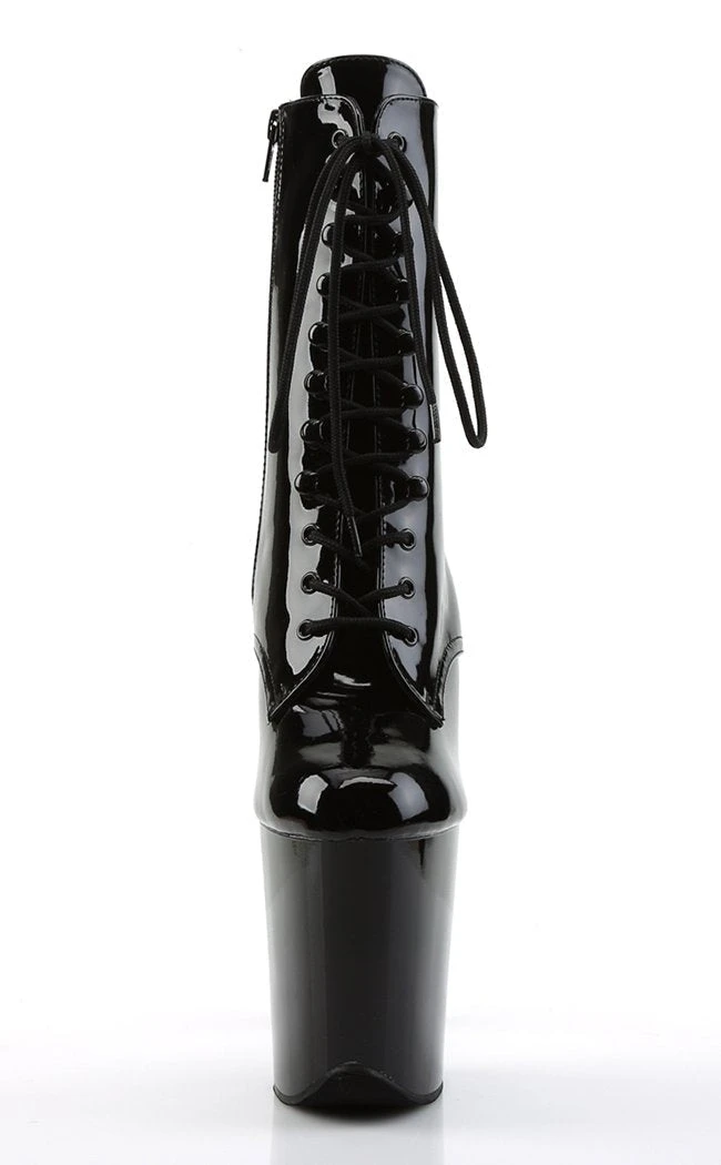 Stand up and stand out in the FLAMINGO-1020 platform boots! These tall af boots feature a sleek patent upper that secures with lace-ups and a side zip for easy on/off.Â