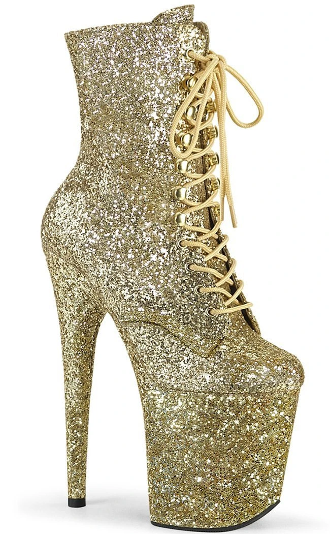 Pleaser Pole Shoes FLAMINGO-1020GWR Gold Glitter Boots