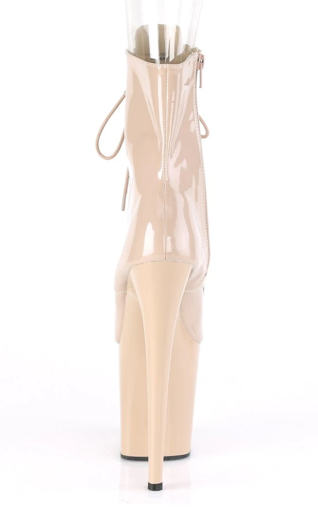 8″ Heel, 4″ PF Peep Toe Lace-Up Ankle Boot, Side Zip