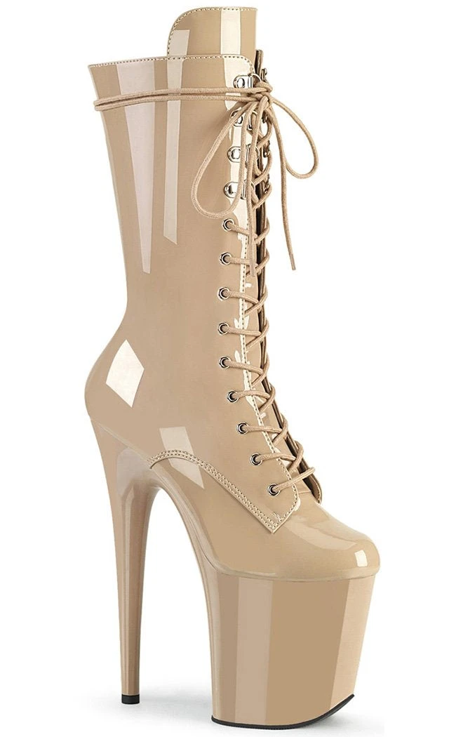 8″ (200mm) Heel, 4″ (100mm) Platform Lace-Up Front Mid Calf Boot, Inside Zip Closure