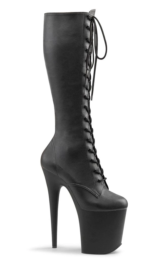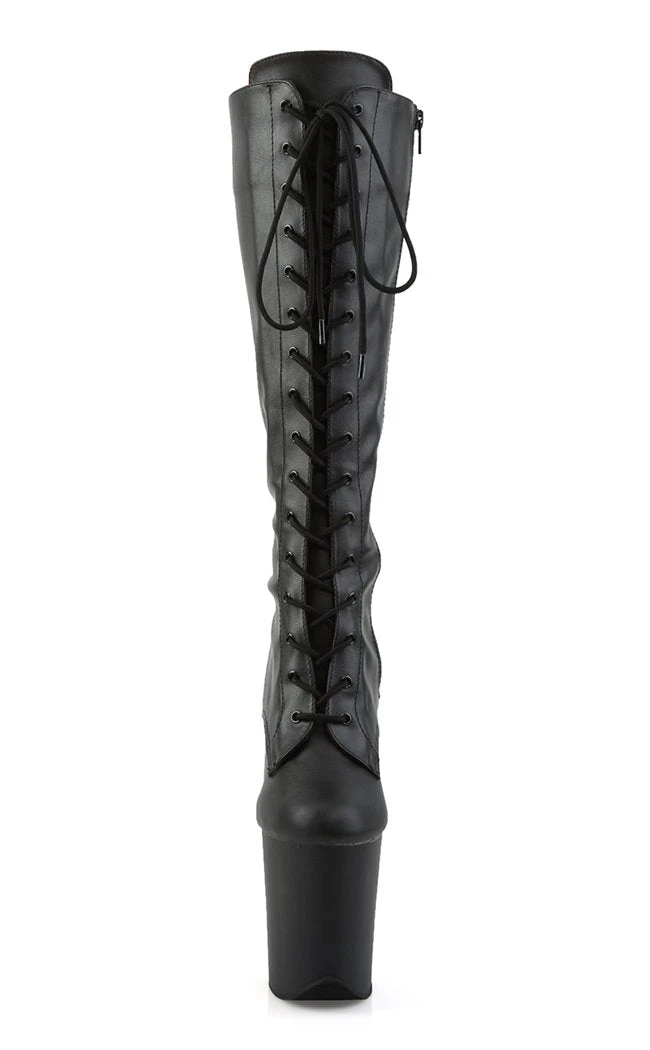 8″ Heel, 4″ PF Lace-Up Stretch Knee Boot, Side Zip