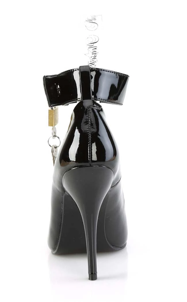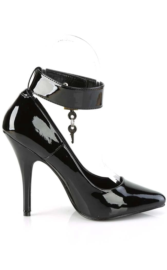 Lock it in with the SEDUCE-432 heels! These sexy statements feature a black patent upper with a wide ankle band with a lockable padlock.