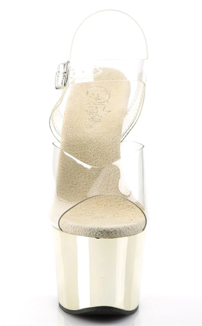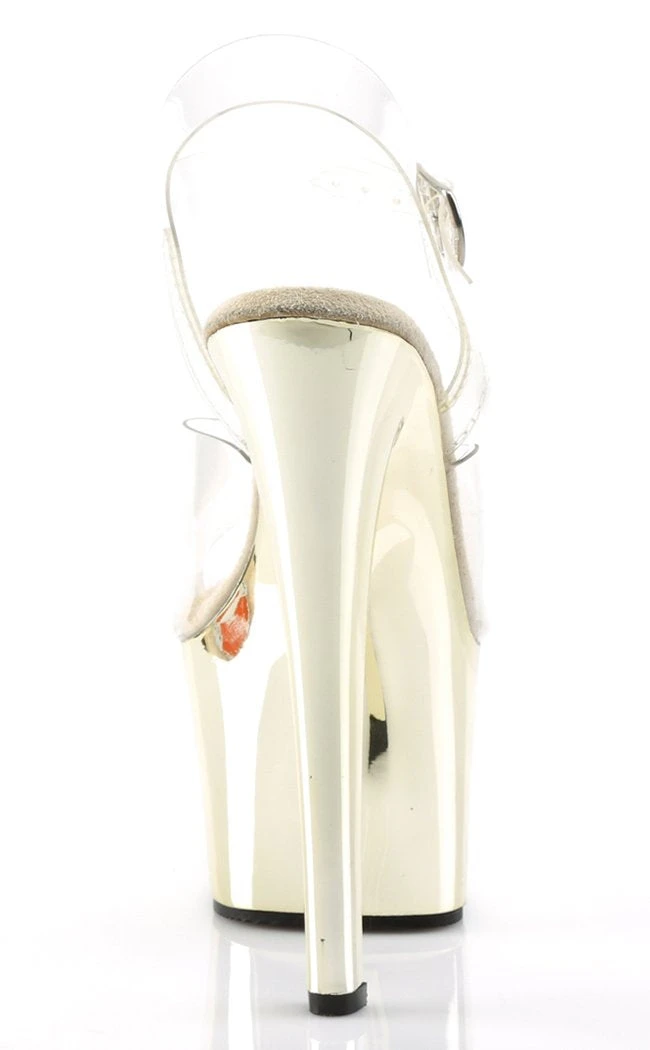7″ Heel, 2 3/4″ Chrome Plated PF Ankle Strap Sandal