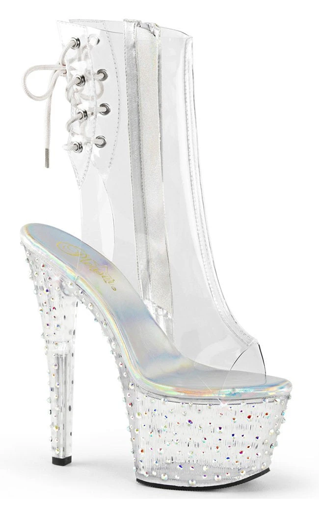 7″ Heel, 2 3/4″ PF Open Toe/Heel Ankle Boot, Side Zip
