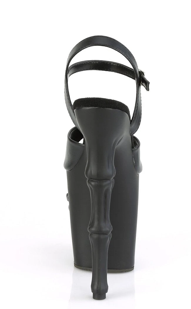 A heel with deadly height! The platform has a grinning skull emerging from the front and the heel is a finger bone so all you ghouls can dance macabre all night long!