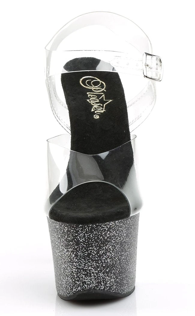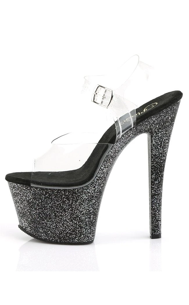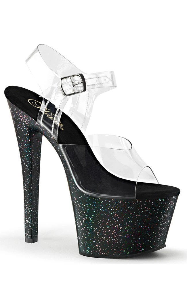 7″ Heel, 2 3/4″ PF Ankle Strap Sandal w/Mini Glitters