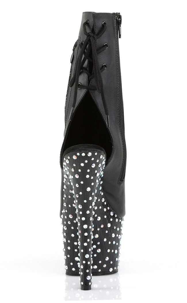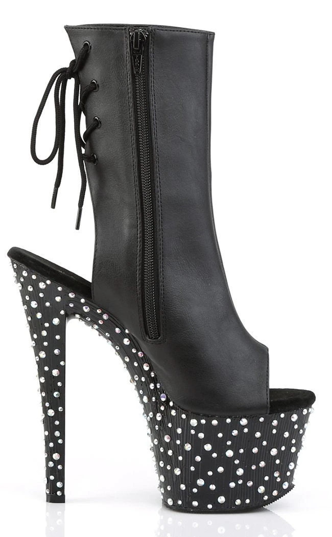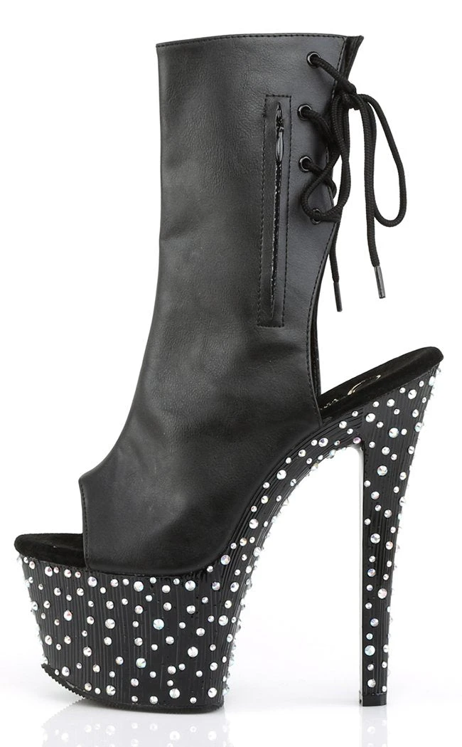 7″ Heel, 2 3/4″ PF Open Toe/Heel Ankle Boot, side Zip