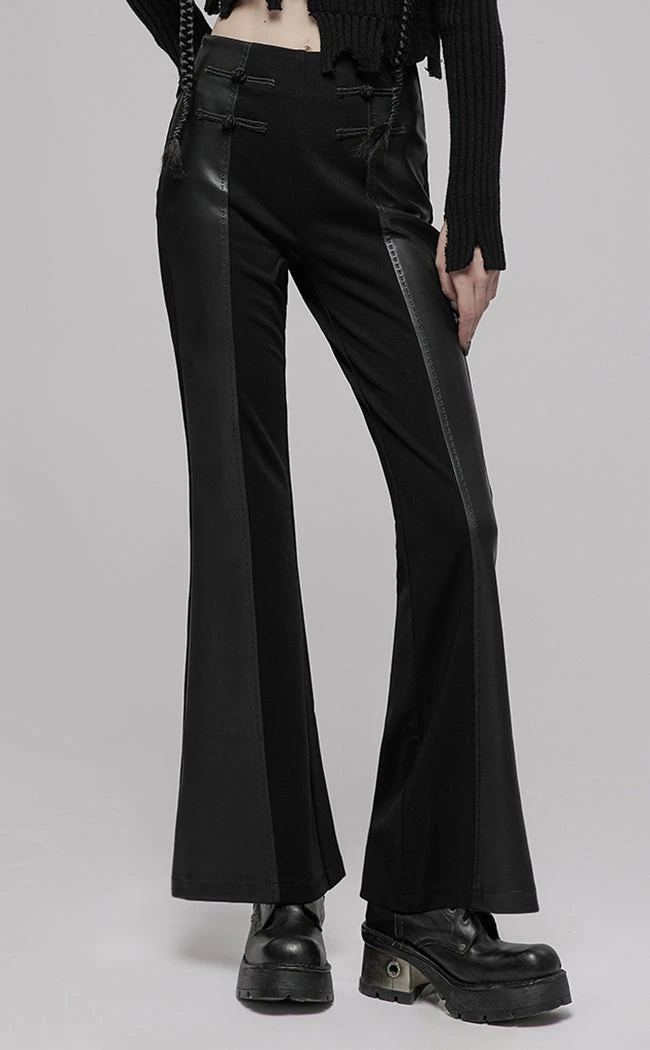 The Auryn Flares will have you feeling like everything golden and glamorous. The combo of sleek PU and soft stretch fabric creates sleek, flattering lines and a wicked contrast. The flares are high waisted for a modern, comfort fit and feature two tie details at the hips for a final classic touch.Â