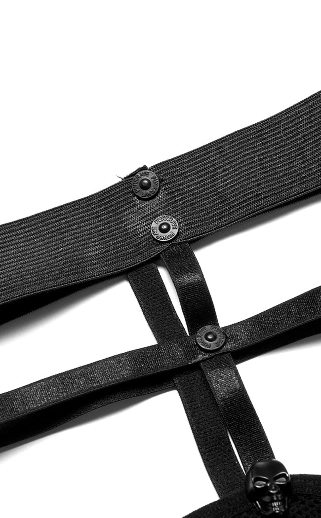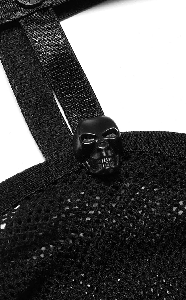 Complete yer darkest outfits with the Calvaria Fishnet Stockings! These super stretch stockings are thigh highs topped with a cage garter detail, securing with a push stud and topped with a cute skull charm.