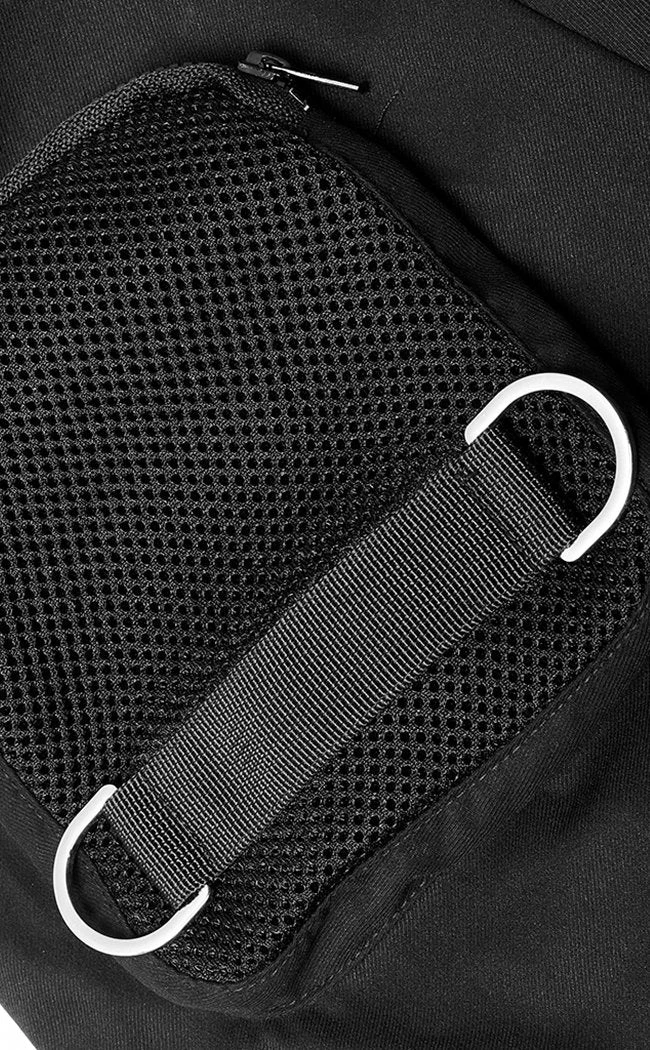 These shorts feature a weave that’s soft on the skin but hardy to withstand whatever life throws in. The high waist is fitted with a tactical belt and matching strap decals all kitted out with D rings so you can attach straps n chains. The pockets are super practical and fitted with contrasting mesh to create a cool texture.Â