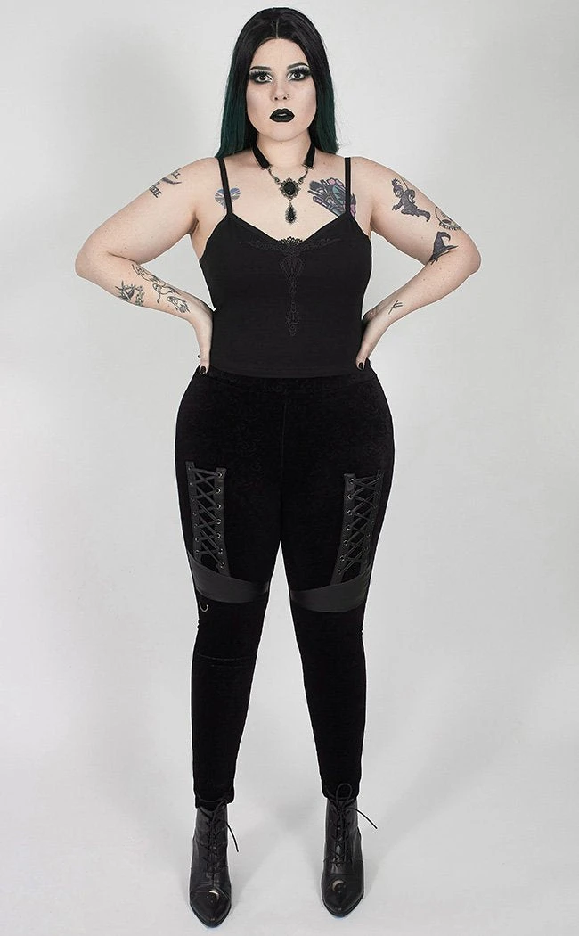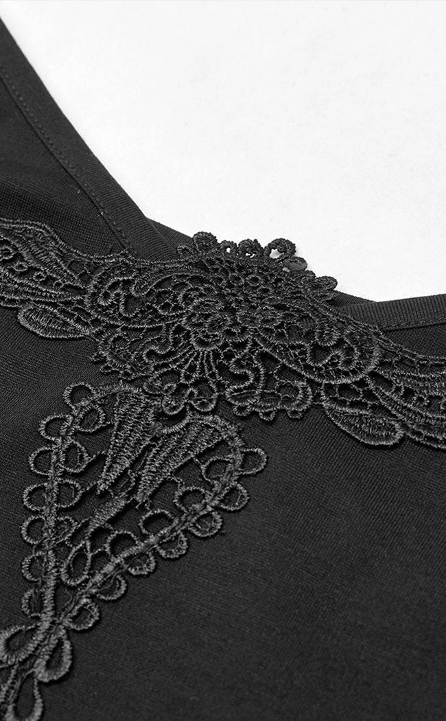 This cami has thin, adjustable straps and a cropped length, ideal for pairing with high waisted pants, skirts and shorts. The neckline is decorated with a delicate applique that will easily dress up anything you match it with!