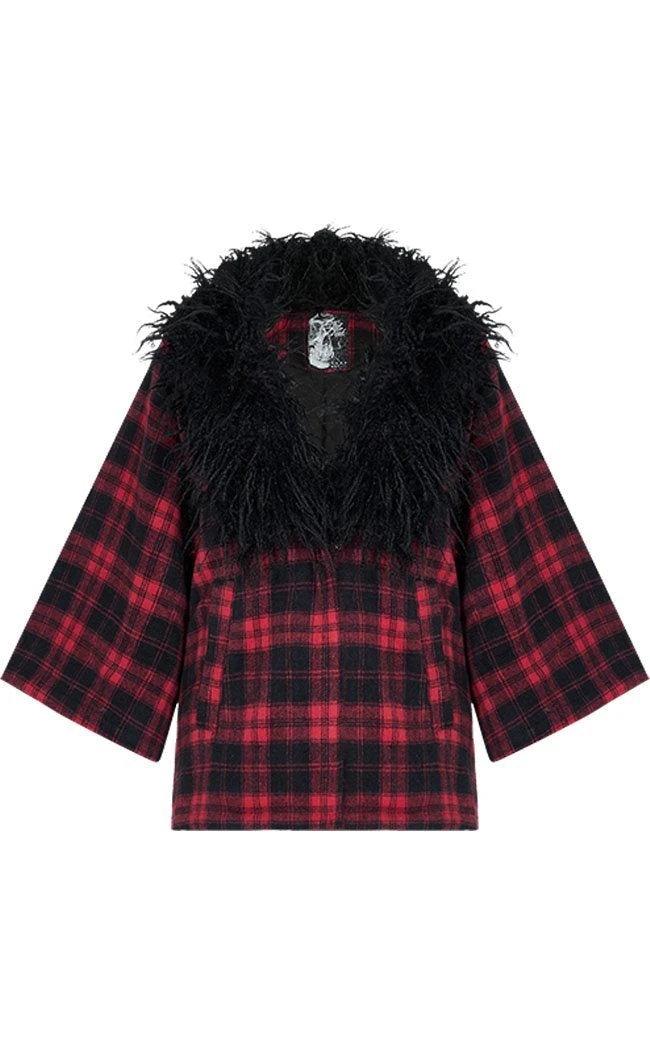The perfect combination of grunge and elegance, the Deville Plaid Faux Fur Coat features gorgeous wide sleeves and a faux fur collar.