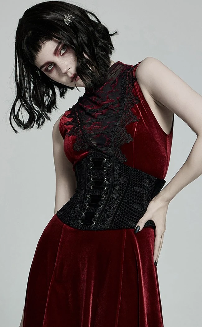 Live your blood countess fantasy in the Drusilla Corset! A layer of rose lace sits delicately over luxury velvet, hugging tight to the body The rear features adjustable laces to match the front lacing panel but is equipped with a side zip for easy on/off.