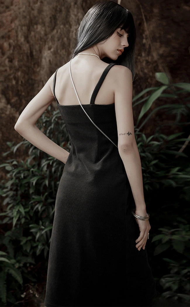 Feel spellbinding and sensual in the Jinxed Slip Dress! Made from thick, textured fabric, this slip fits at the waist and flares to an A line skirt with a sexy side slit. One of the two thick shoulder straps features a clasp to add a touch of heavy metal to the look.