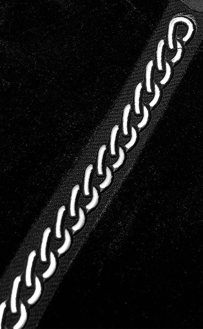 Kit up in the futuristic glam of the Mircea Velvet Dress! Soft stretch velvet forms this long sleeve dress, featuring a wide neckline, a skater skirt, and a fitted waist decked out with eyelets and lacing at the back. Fluorescent trims create a “jacket” look and chain embroidery runs down the front in an eyecatching detail to make you stand out from the boring masses.